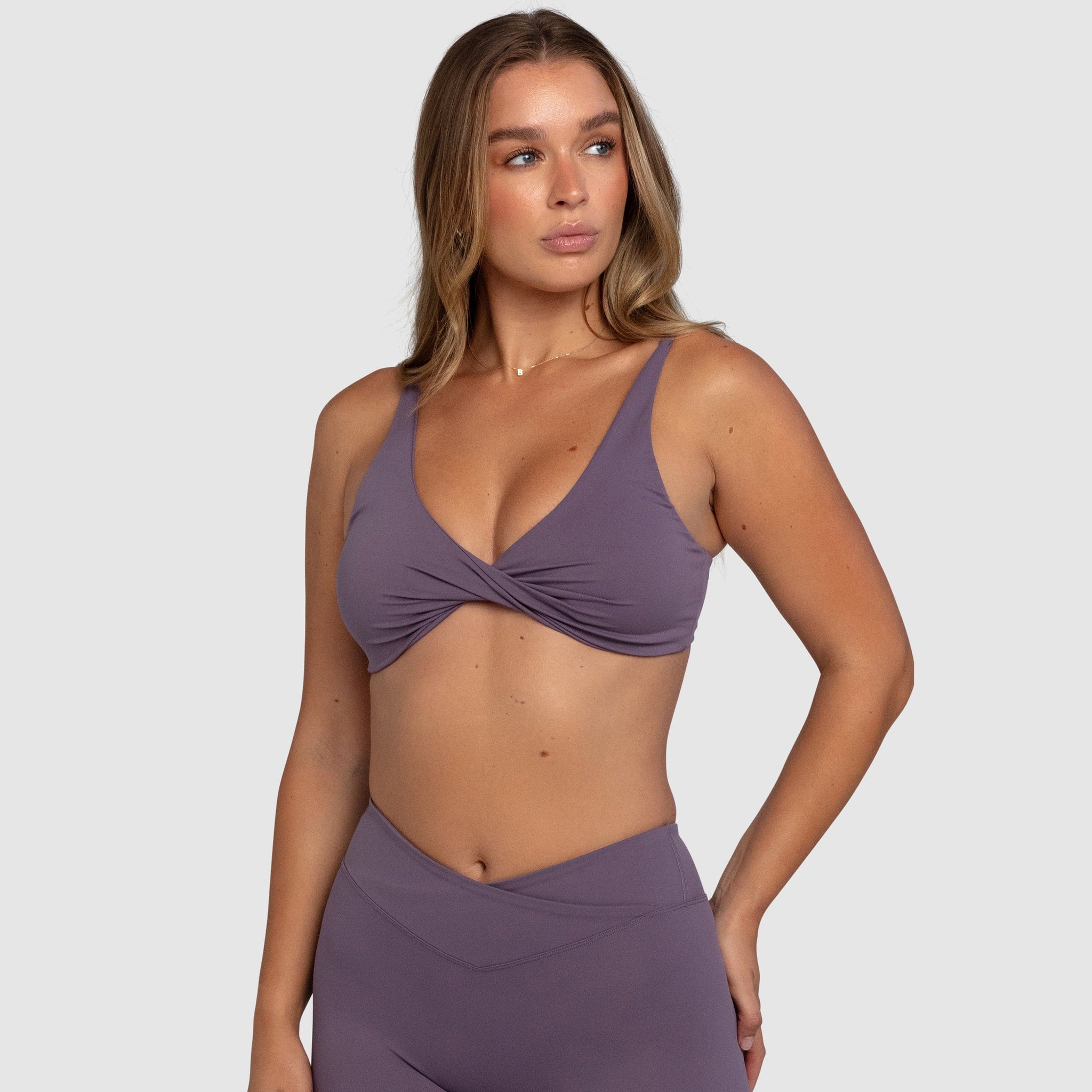 Aura Twist-Knot Crop is crafted in our signature buttery-soft Aura fabrication, designed to smooth, sculpt and support while feeling weightless against the skin. The contouring front twist subtly enhances and frames your shape, creating a naturally lifted, softly sculpted silhouette without padding or bulk.
